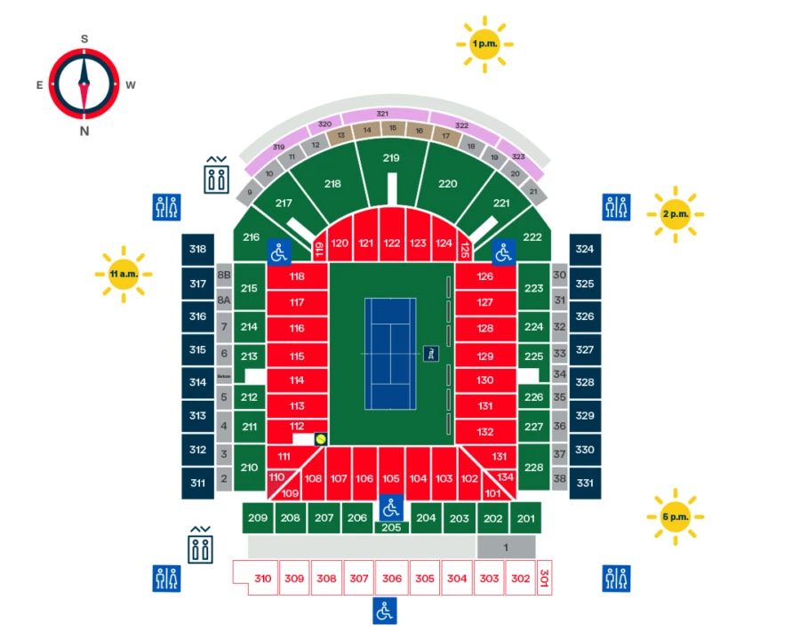 C’est sur le Court central que les plus grandes stars du tennis tenteront de vous en mettre plein la vue. Un billet pour le Court central donne également accès au niveau 200 du Court Rogers et aux autres courts du Stade IGA (premier arrivé, premier servi).