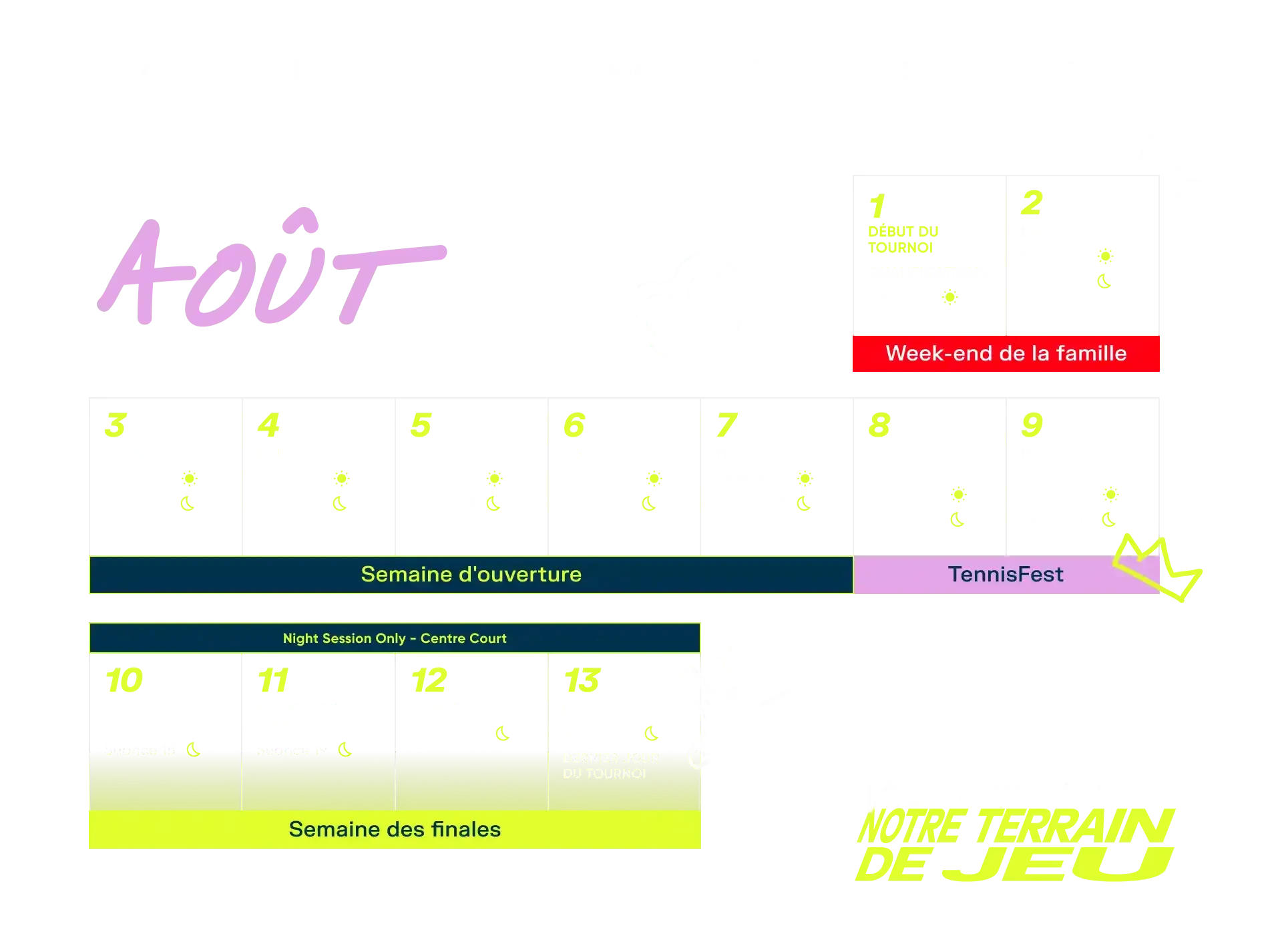 Ce sont les populaires Week-end de la famille IGA et Week-end de la famille 407 ETR, conçus pour les amateurs de tous âges, qui donneront le coup d’envoi aux épreuves de Montréal et de Toronto. Comme en 2025, les qualifications ne dureront qu’une journée, soit le samedi 1er août, et les 32 joueuses et joueurs se disputeront une place aux tableaux principaux du simple. C’est l’occasion idéale de faire découvrir le tennis à vos amis et à votre famille.